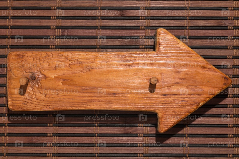 Деревянная указка из дерева с деревянным кляпом лежит на бамбуковой циновке. Вид сверху