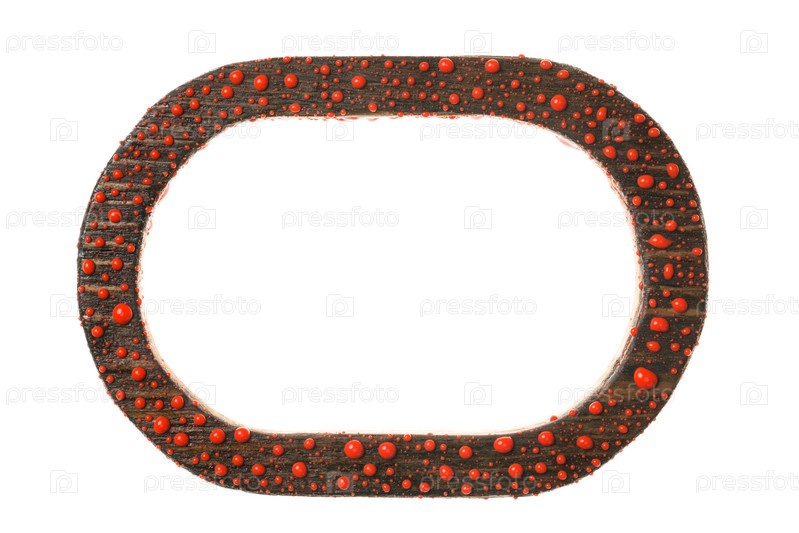 Капли красной краски на овальной доске. Изолированные на белом фоне
