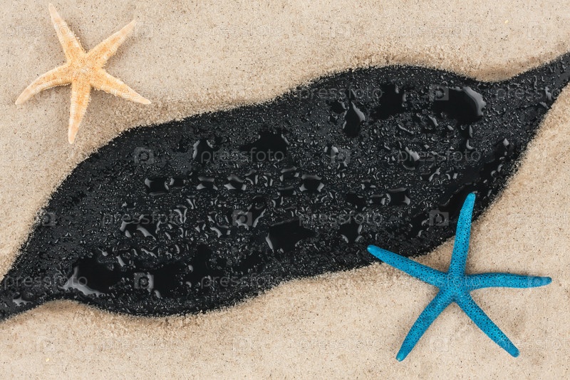 Синие и бежевые морские звезды лежат на песке