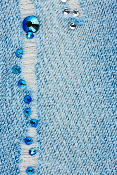 Светло-голубые рваные джинсы со стразами