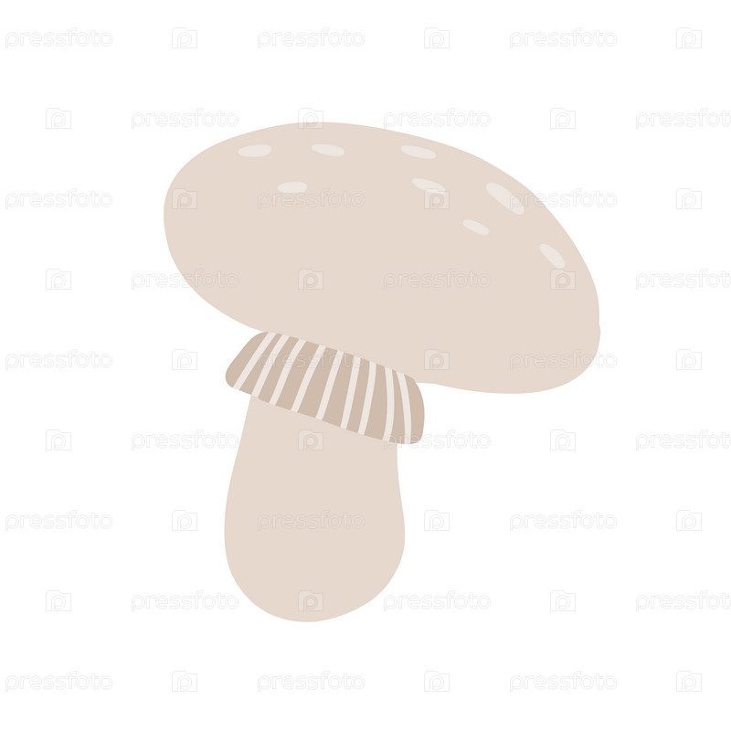 Простая плоская иллюстрация бежевого гриба с точечной шляпкой и полосатыми жабрами на белом фоне. Мультяшный дизайн подчеркивает естественную, органическую форму, идеально подходит для ботанической или пищевой темы