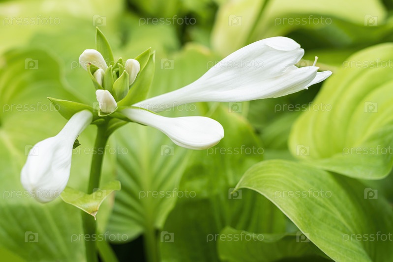 Бутоны цветов хосты крупным планом на зеленом фоне