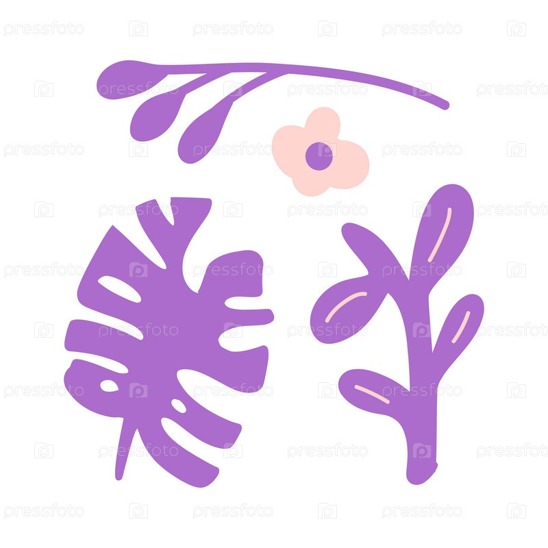 Пышные фиолетовые листья джунглей в ярком и современном дизайне. Уникальная и смелая ботаническая иллюстрация для тропических, экзотических или вдохновленных природой проектов