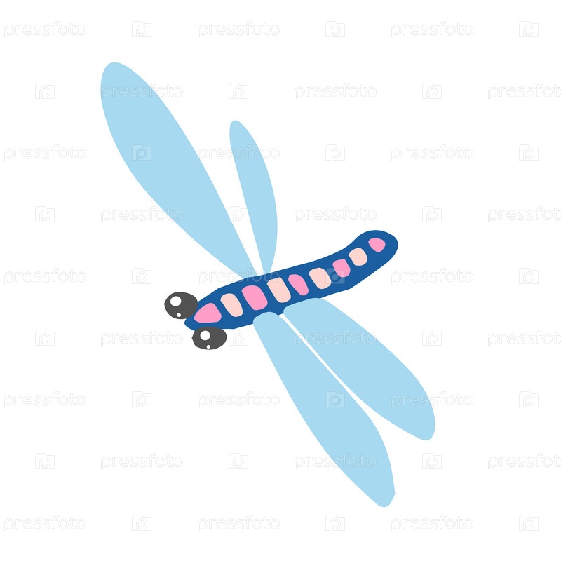 Нежная розовая стрекоза с ярко-голубыми крыльями в полете. Причудливая и безмятежная иллюстрация, передающая очарование сада и яркие летние вибрации