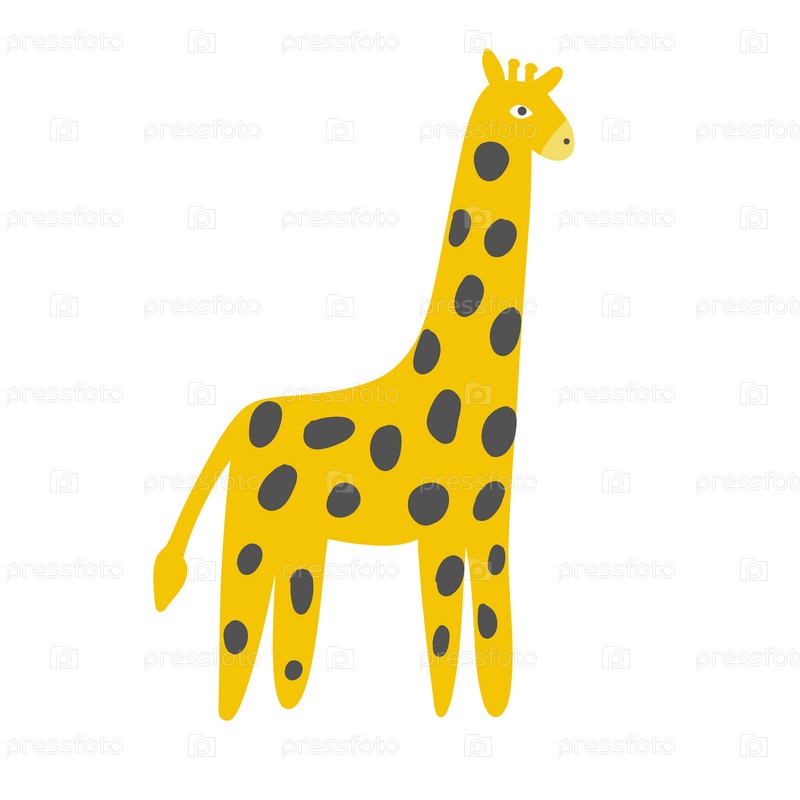 Высокий желтый жираф с черными пятнами и дружелюбным лицом. Очаровательная иллюстрация, подходящая для сафари, тематики животных и творческого искусства дикой природы