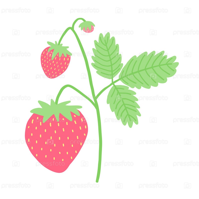 Подробная иллюстрация клубничного растения с яркими красными плодами, зелеными листьями и тонкими стеблями. Идеально подходит для ботанического искусства, садового дизайна и графики на органическую тематику