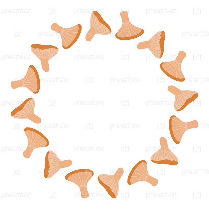 Круглый венок из грибов в земляных тонах, идеально подходящий для осеннего декора, с шляпками грибов в минималистичном дизайне, идеально подходящим для сезонных или ботанических тем
