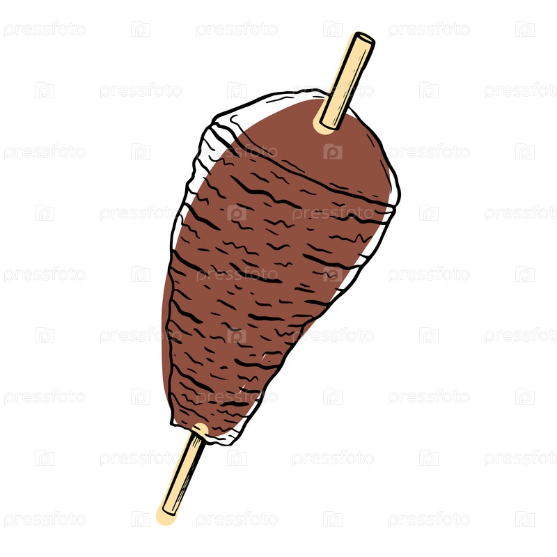 Иллюстрация традиционного турецкого донера-кебаба, демонстрирующая ароматное, сочное мясо на шампуре. Отлично подходит для турецкой кухни или уличной еды