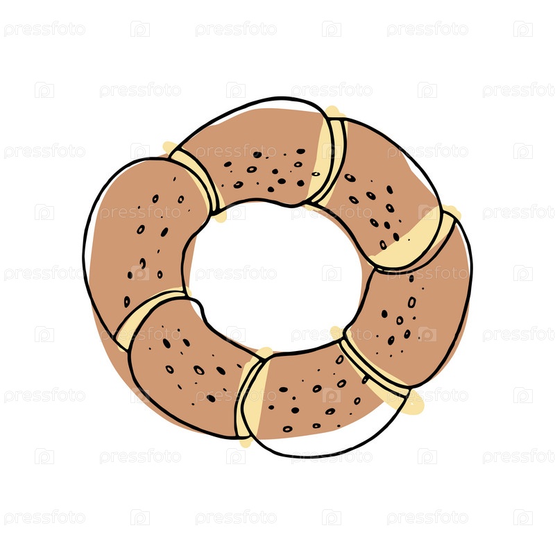 Традиционный турецкий дизайн симит-бублика, покрытый кунжутом, подчеркивающий культуру уличной еды. Идеально подходит для иллюстраций выпечки, путешествий или завтраков