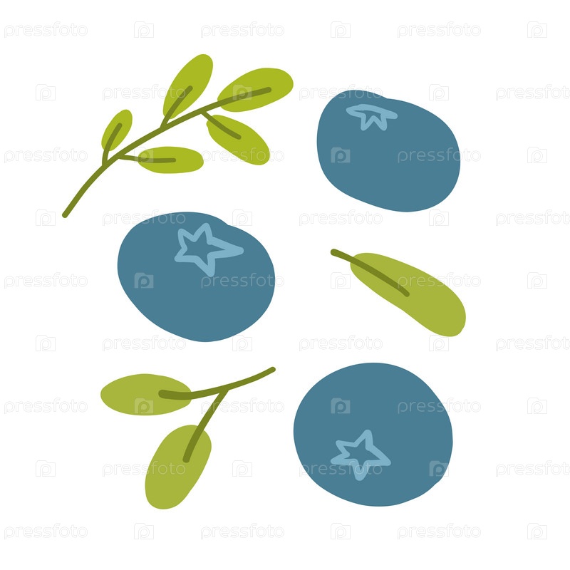 Иллюстрация черники и зеленых веток и листьев на белом фоне. Дизайн отличается простыми, нарисованными от руки элементами в минималистском стиле, подчеркивая органические и природные темы