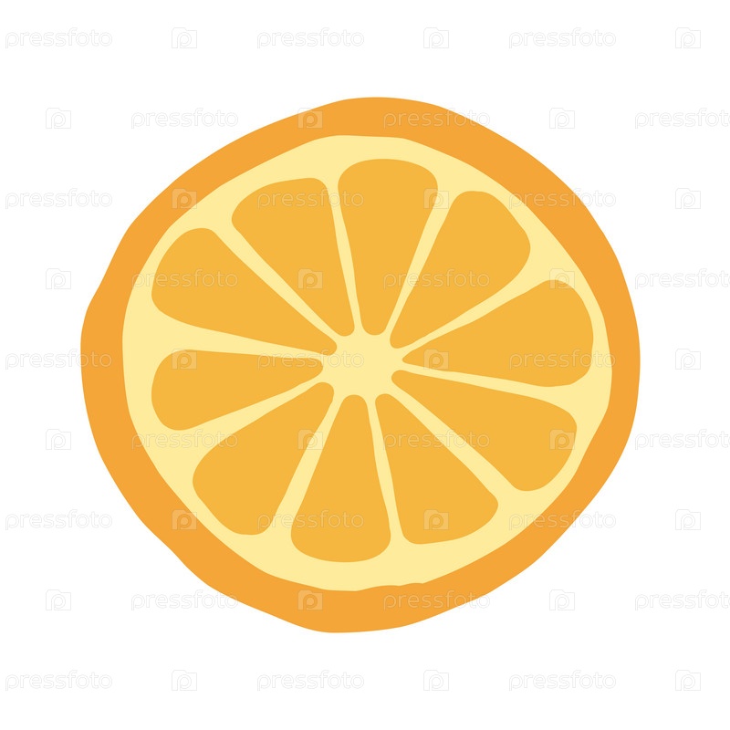 Иллюстрация дольки апельсина на белом фоне. Апельсин изображен в ярком, свежем виде, демонстрируя свои сочные дольки в круговом узоре, подчеркивая его естественную привлекательность