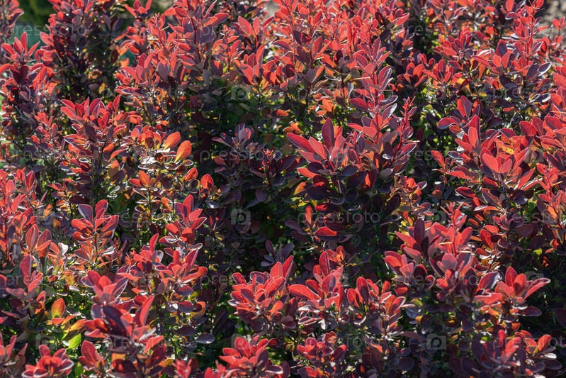 Кусты с ярко-красной листвой создают красочный пейзаж в лучах осеннего солнца