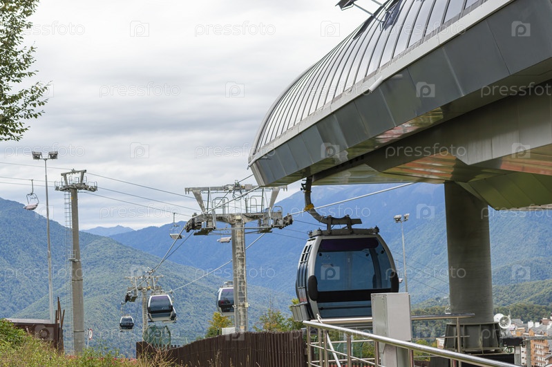 Подъемники горной канатной дороги на фоне гор