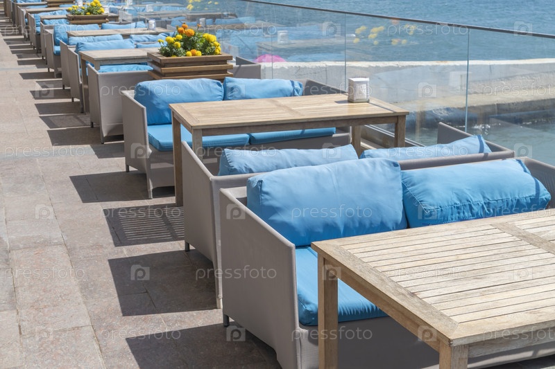 Пустые столики кафе крупным планом в качестве фона