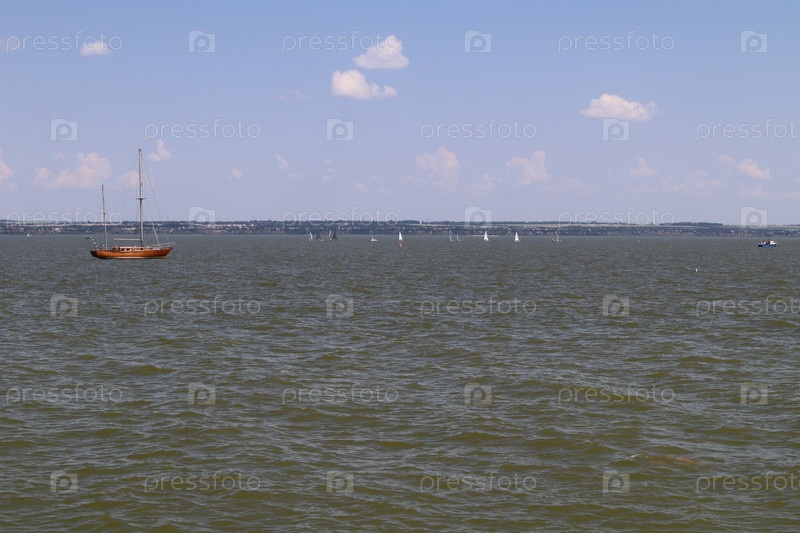 Яхты на воде на фоне голубого неба
