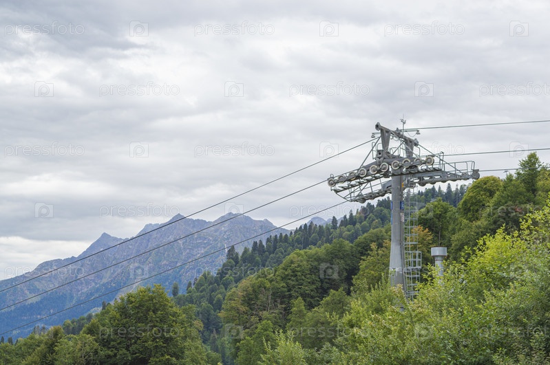 Подъемники горной канатной дороги на фоне гор