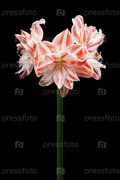 Красно-белый цветок амариллиса на черном фоне