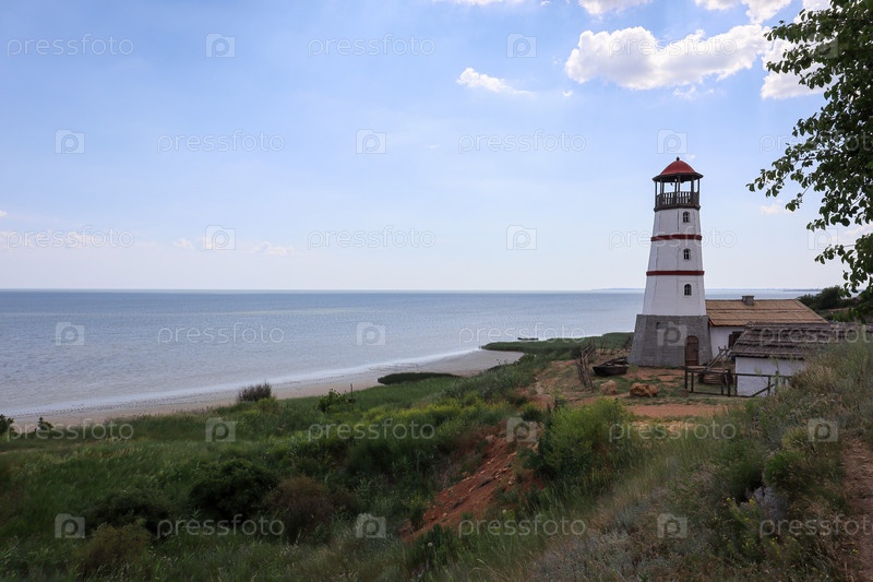 Старый маяк на фоне голубого неба