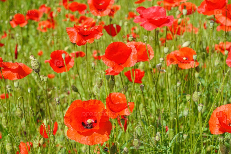 Красивый красный мак на зеленом фоне