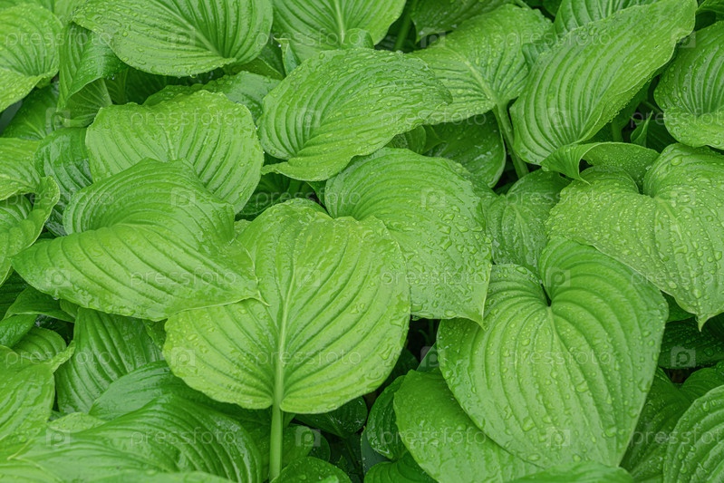 Листья хосты с каплями дождя крупным планом в качестве фона