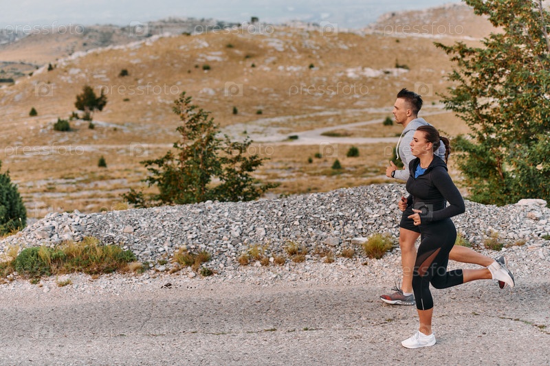 Бодрящая утренняя пробежка для пары в горах