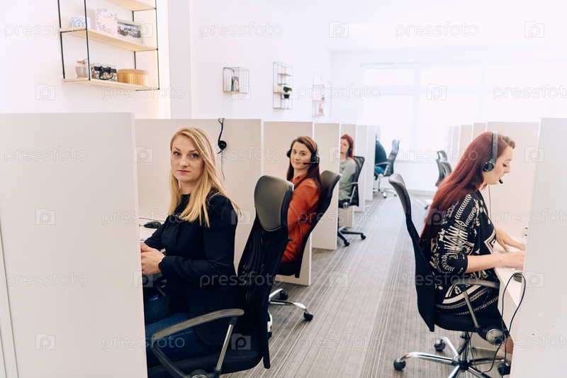 Команда женщин, оказывающих поддержку клиентам в колл-центре