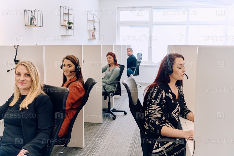 Команда женщин, оказывающих поддержку клиентам в колл-центре