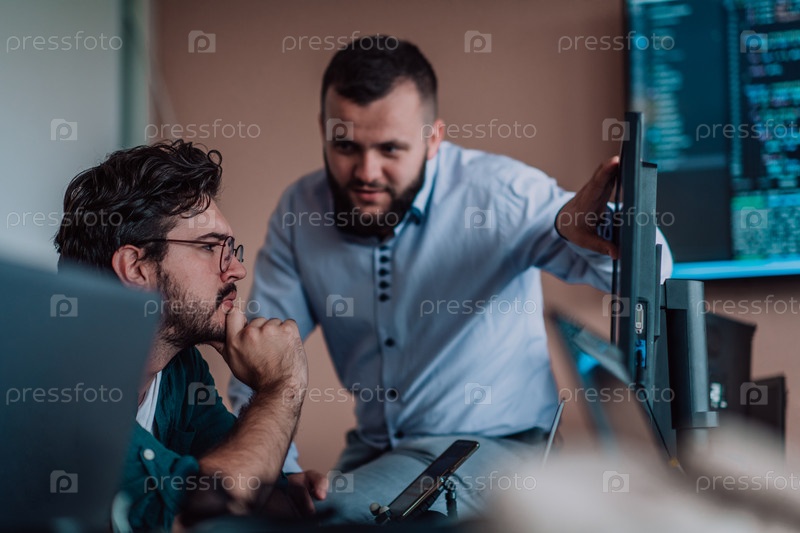 Программисты, погруженные в тесное сотрудничество, усердно трудятся вместе над решением сложных проблем и разработкой инновационных мобильных приложений с безупречной функциональностью