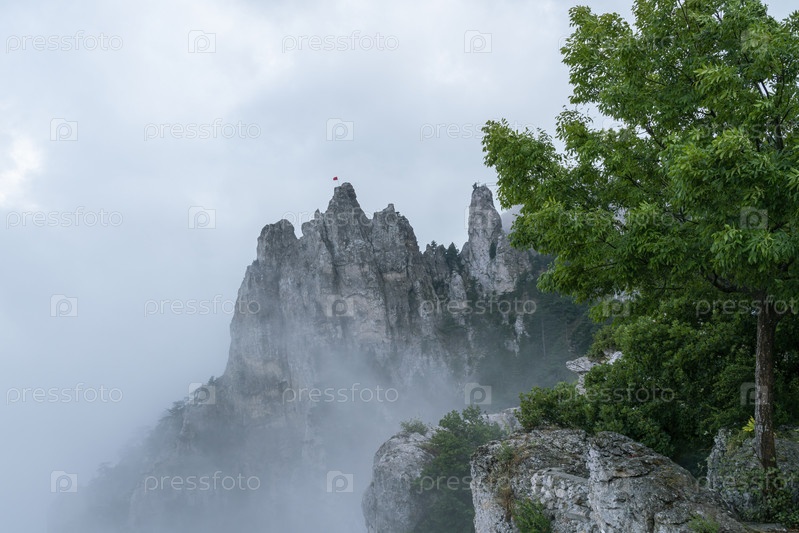 Скала в ненастную погоду в тумане