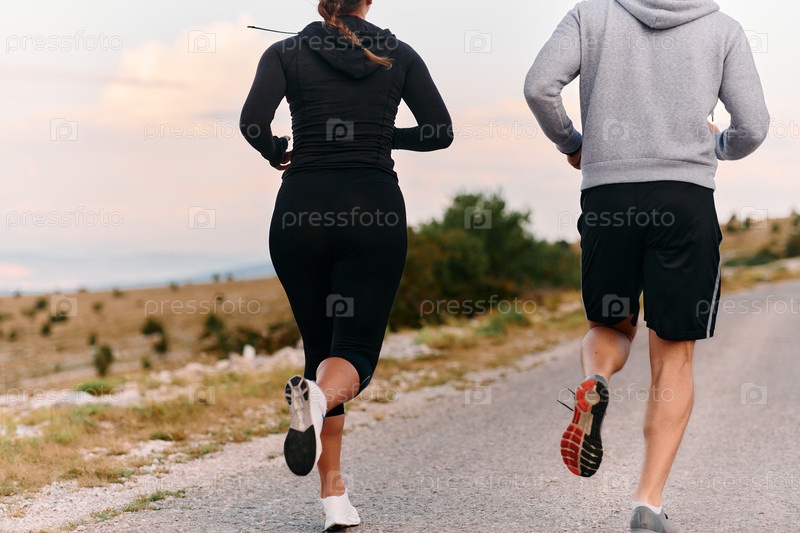 Бодрящая утренняя пробежка для пары в горах