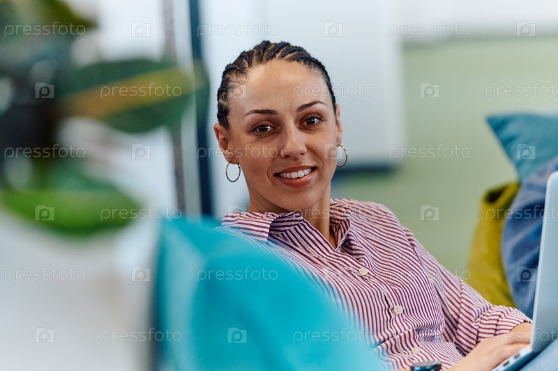 Современный программист обсуждает будущие бизнес-проекты с коллегами в современном офисе стартапа