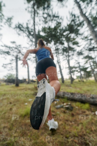 Авантюрная женщина преодолевает лесные препятствия с решимостью и ловкостью