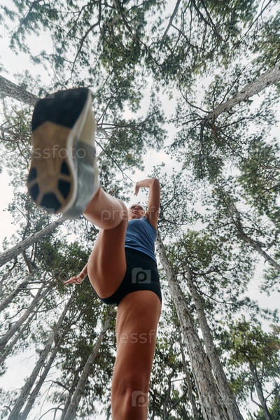 Авантюрная женщина преодолевает лесные препятствия с решимостью и ловкостью