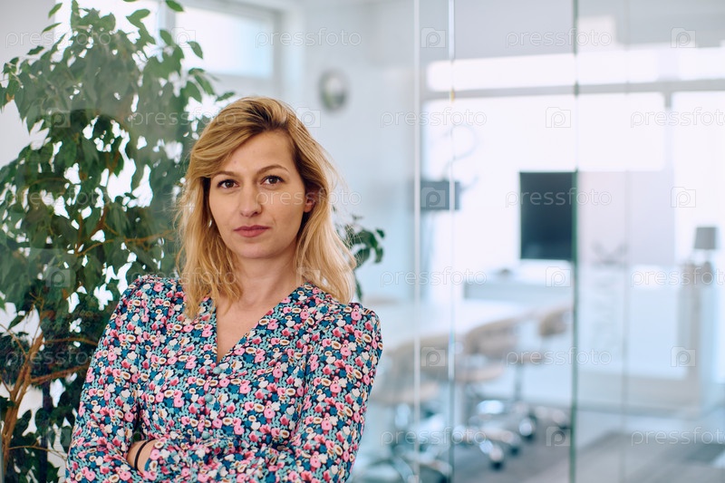 Лучезарная бизнесвумен: яркое присутствие в коридоре компании