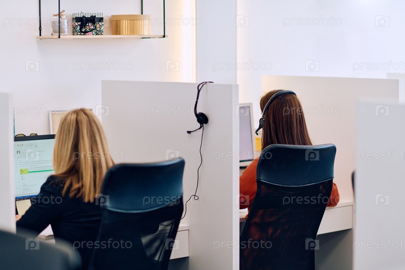 Команда женщин, оказывающих поддержку клиентам в колл-центре