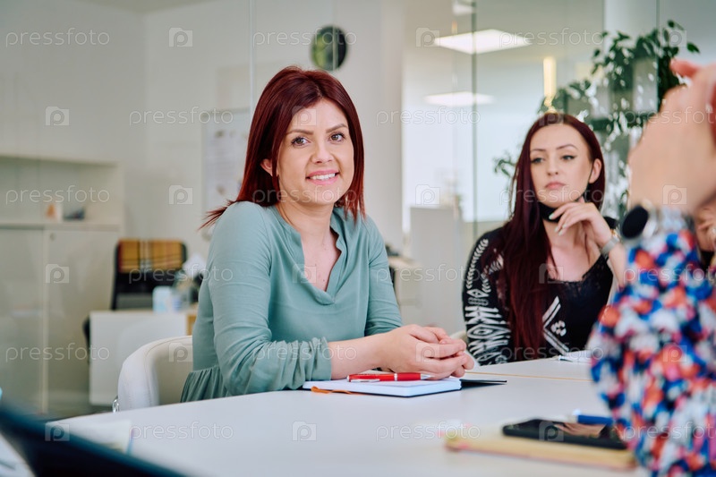 Женская бизнес-группа обсуждает новые темы и стратегии по улучшению клиентской деятельности