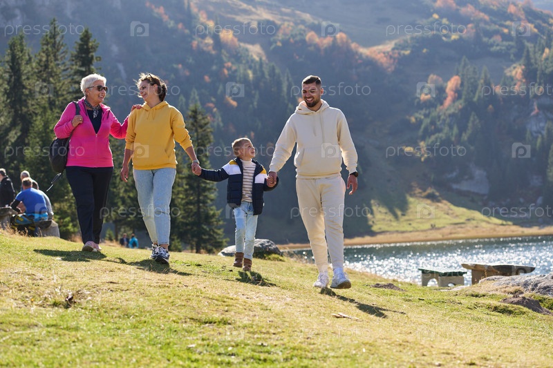 Семья разделяет прекрасные моменты с друзьями на фоне потрясающих пейзажей гор, озер и извилистых троп, пропагандируя здоровый образ жизни и радость семейных уз в объятиях красоты природы