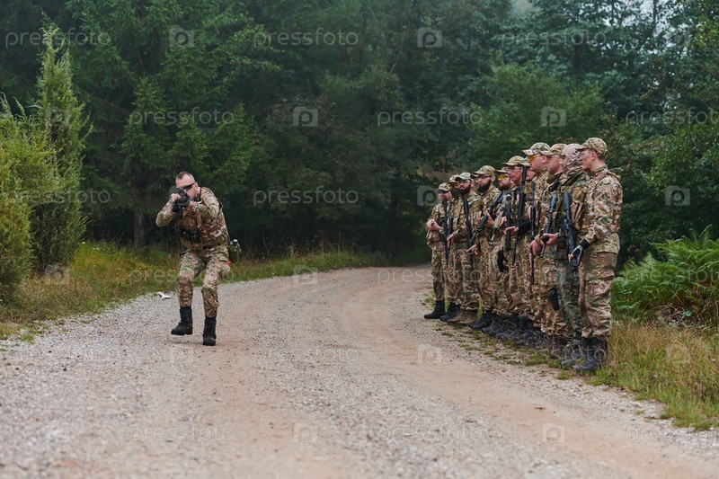 Майор дает точные военные указания своему элитному подразделению, воплощая стратегическое руководство, пока они собираются на инструктаж по тактическим маневрам и дисциплинированной координации