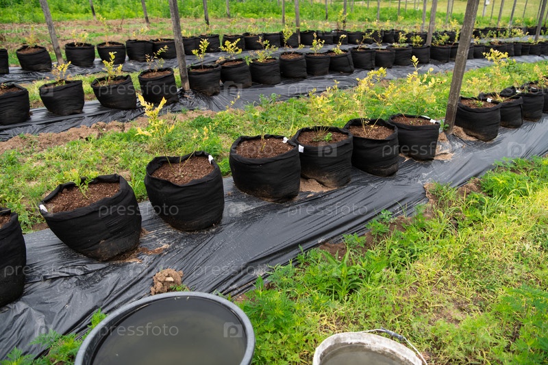 Молодые саженцы черники готовы к будущему производству свежих соков