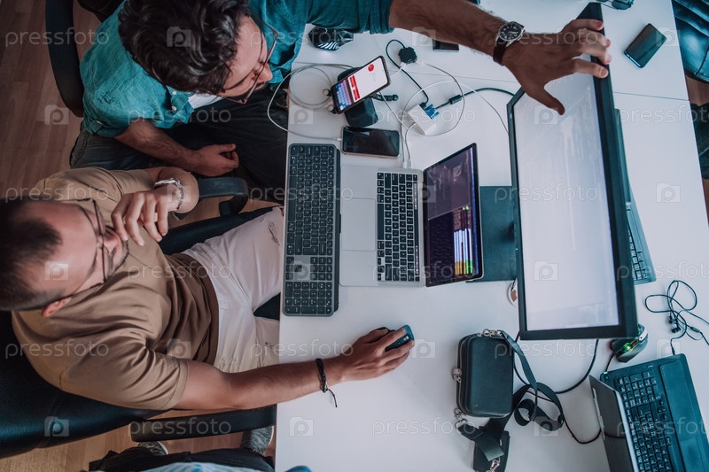 Программисты, погруженные в тесное сотрудничество, усердно трудятся вместе над решением сложных проблем и разработкой инновационных мобильных приложений с безупречной функциональностью