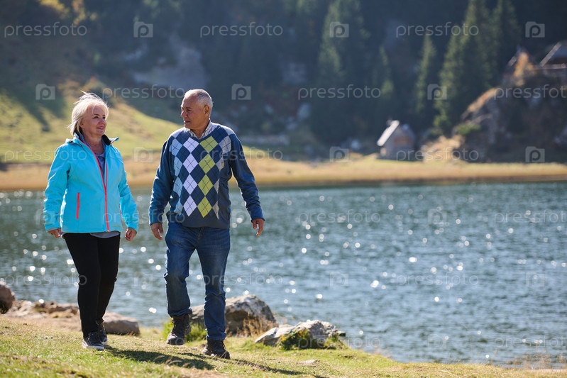 Пожилая пара прогуливается среди захватывающей дух красоты природы, сохраняя свою жизненную силу и спокойствие, наслаждаясь радостями осознанного и гармоничного образа жизни