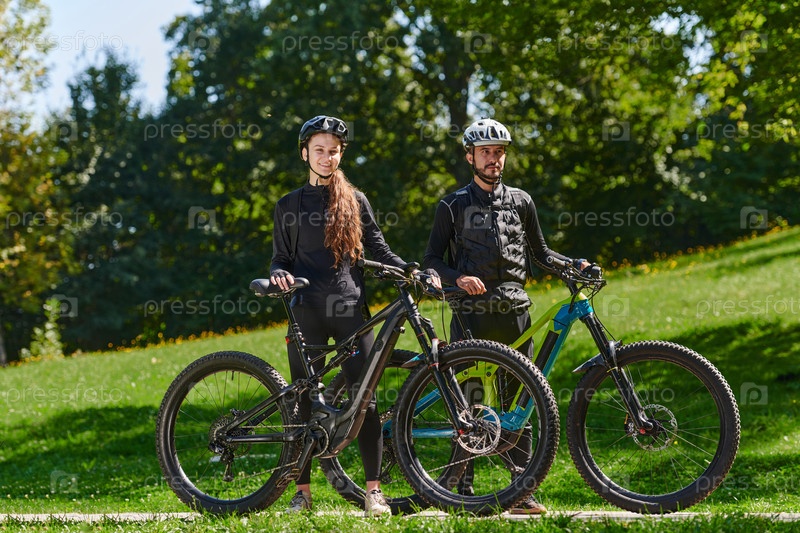 Милая парочка, вооруженная велосипедами и поглощенная планированием своего путешествия, проверяет свои мобильные телефоны и часы, планируя живописные маршруты в парке, органично сочетая технологии и приключения на свежем воздухе для восхитительного опыта
