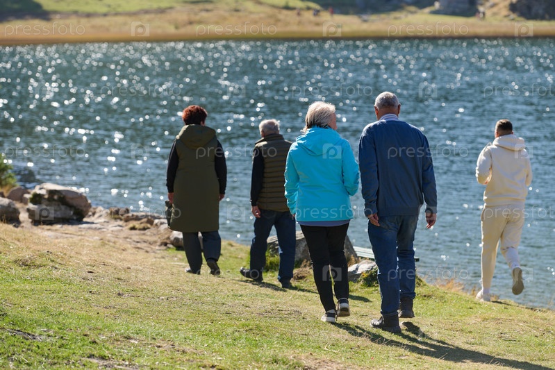 Пожилая пара прогуливается среди захватывающей дух красоты природы, сохраняя свою жизненную силу и спокойствие, наслаждаясь радостями осознанного и гармоничного образа жизни