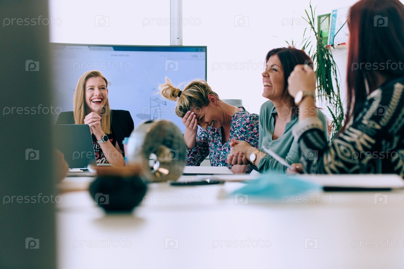 Разнообразная бизнес-группа обсуждает проекты в современном стеклянном офисе