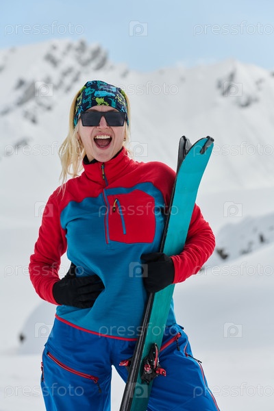 Женщина-альпинистка покоряет Альпы с походным снаряжением