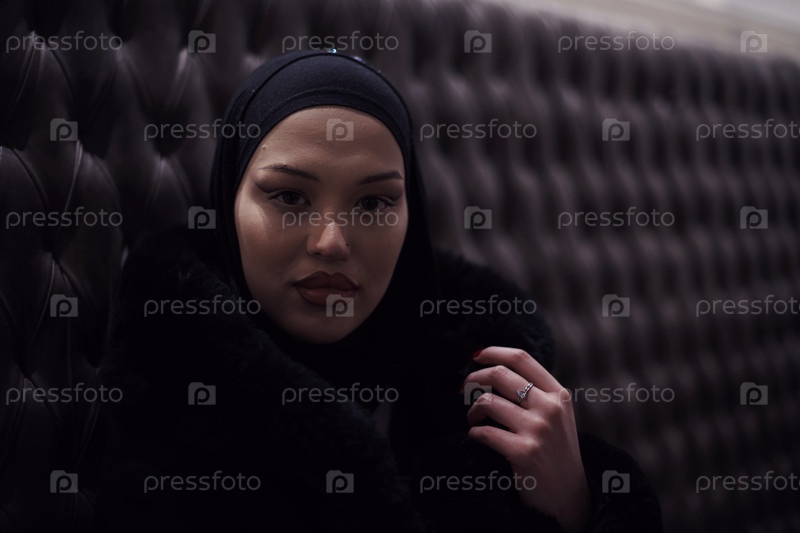 Счастливая ближневосточная женщина, которая отдыхает, выпивая чашку чая в ресторане