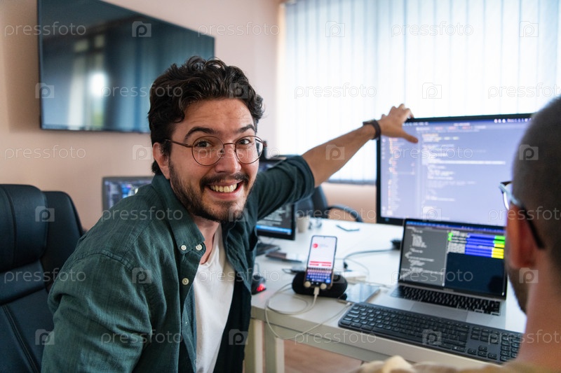 Программисты, погруженные в тесное сотрудничество, усердно трудятся вместе над решением сложных проблем и разработкой инновационных мобильных приложений с безупречной функциональностью