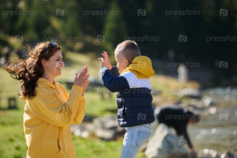 Мать и сын создают заветные воспоминания, играя на свежем воздухе, а их смех отражает радость совместных моментов и связь между родителем и ребенком