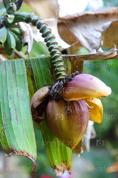 Банановая пальма. цветок и плод. бананная пальма. цветки и фрукты