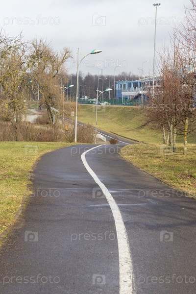 Бег трусцой, ходьба, езда на велосипеде по дорожке в парке. На открытом воздухе